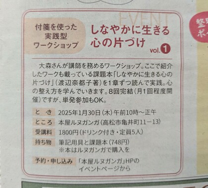 来年から始まる、本屋ルヌガンガ様での心の片づけワークショップ。